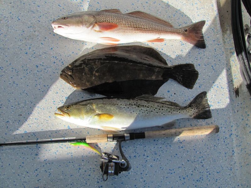 Most of our charters are "stand-up" fishing and casting on light tackle, 8 to 10 pound test. We mostly use jigs, but occasionally use top water bait, as well as some cut bait and live bait. We may fish in as little water as the boat will float in to depths of eight to ten feet. This depends on factors such as time of year and the tides.